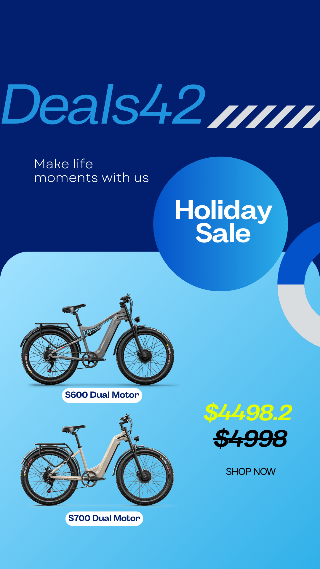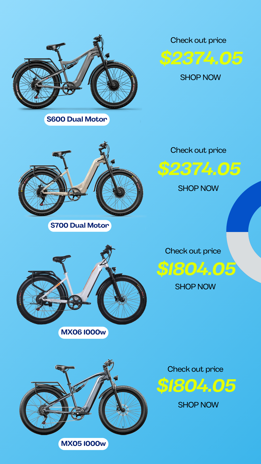 Very good bike for the price. Powerful motors. Fat tires and suspension makes for a comfy ride. Brakes are adequate. I like the electronic "bell" - honking at pedestrians is fun. Overall it's good value. I have other e-bikes and prefer a mid-drive but this thing is pretty good and about half the price. It certainly does the job I wanted it to do.